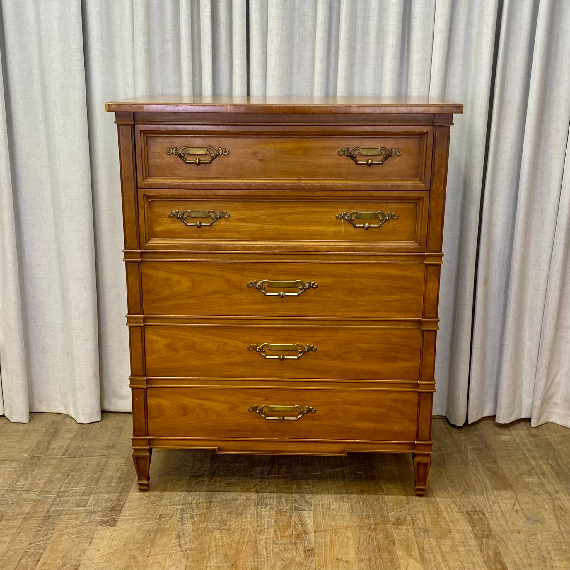 Directoire Style Chest by Drexel brings timeless elegance to any room. This classic piece features refined proportions and traditional craftsmanship. Measuring 38"W x 20"D x 48"H, it offers substantial storage without overwhelming your space. Perfect for bedrooms, living rooms, or entryways, this chest combines functional design with sophisticated style that complements both modern and traditional décor.
