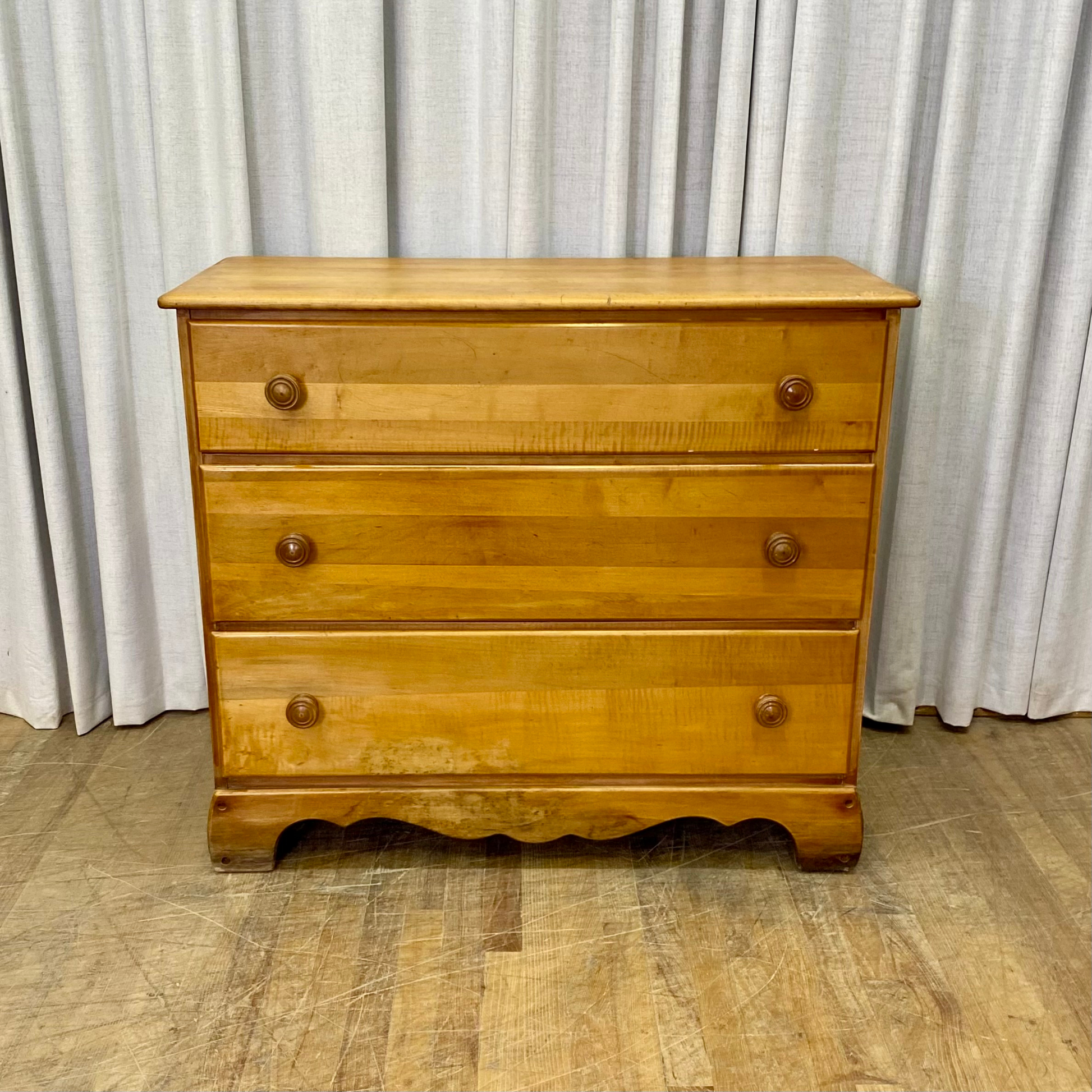 Crafted from rich maple wood, this Three Drawer Maple Chest combines timeless antique style with practical design. Measuring 40" wide, 18" deep, and 34" high, it offers ample storage while fitting seamlessly into various spaces. The quality wooden pulls add authentic character, making it a standout piece.